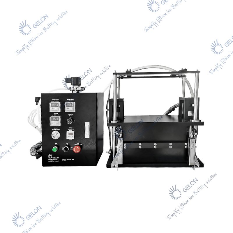 The upper cavity presses onto the bottom plate to form a sealed chamber. First, the system performs an initial vacuum cycle. Then, it releases the vacuum and allows the cell to rest. Next, it applies a second vacuum to reach -70KPa and holds this level for a programmed period. Finally, it performs a third vacuum cycle reaching -95KPa to thoroughly remove residual air from the cell.